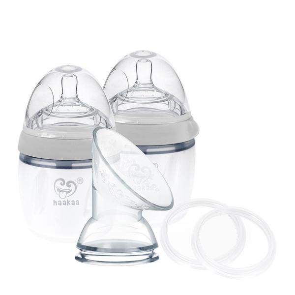 ابدأ رحلة إطعامك مباشرة مع عبوة مضخة وزجاجة هاكا من الجيل الثالث! قم بإخراج الحليب وتغذيته وتخزينه بسهولة وفعالية باستخدام نظام التغذية 5 في 1 الأول من نوعه في العالم من Haakaa. من خلال الالتواء السريع للجزء العلوي ، يمكنك تبديل ملحق الزجاجة الخاص بك بأي من مجموعتنا من الملحقات الاختيارية القابلة للتبديل (تباع كل منها على حدة). لدينا شفة مضخة الثدي الشهيرة التي تتيح لك التعبير مباشرة في الزجاجة ، وموزع ملعقة إطعام عندما ينتقل طفلك إلى المواد الصلبة ، وزجاجة رشة لمساعدة طفلك على الانتقال من زجاجة إلى كوب وقرص مانع للتسرب إلى الحفاظ على أي طعام أو حليب متبقي بعد الرضاعة. تحتوي هذه العبوة على: