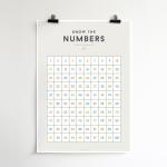 تعلم العد على طول الطريق من 1 إلى 100 ، من خلال تصميم شبكة رمز اللون سهل المتابعة.