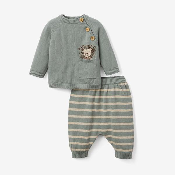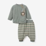 - مجموعة هدايا للأطفال مكونة من قطعتين تشمل سترة أطفال منسوجة من الجاكار القطني وبنطلون منسوج ناعم