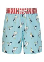 هذه المطبوعة البجع الفائقة اللطيفة تجلس على خلفية زرقاء شاحبة ، مع لوحات ذراع مخططة باللونين الأحمر والأبيض. سريع الجفاف ، السروال القصير مصنوع ليتم ارتداؤه في الماء.