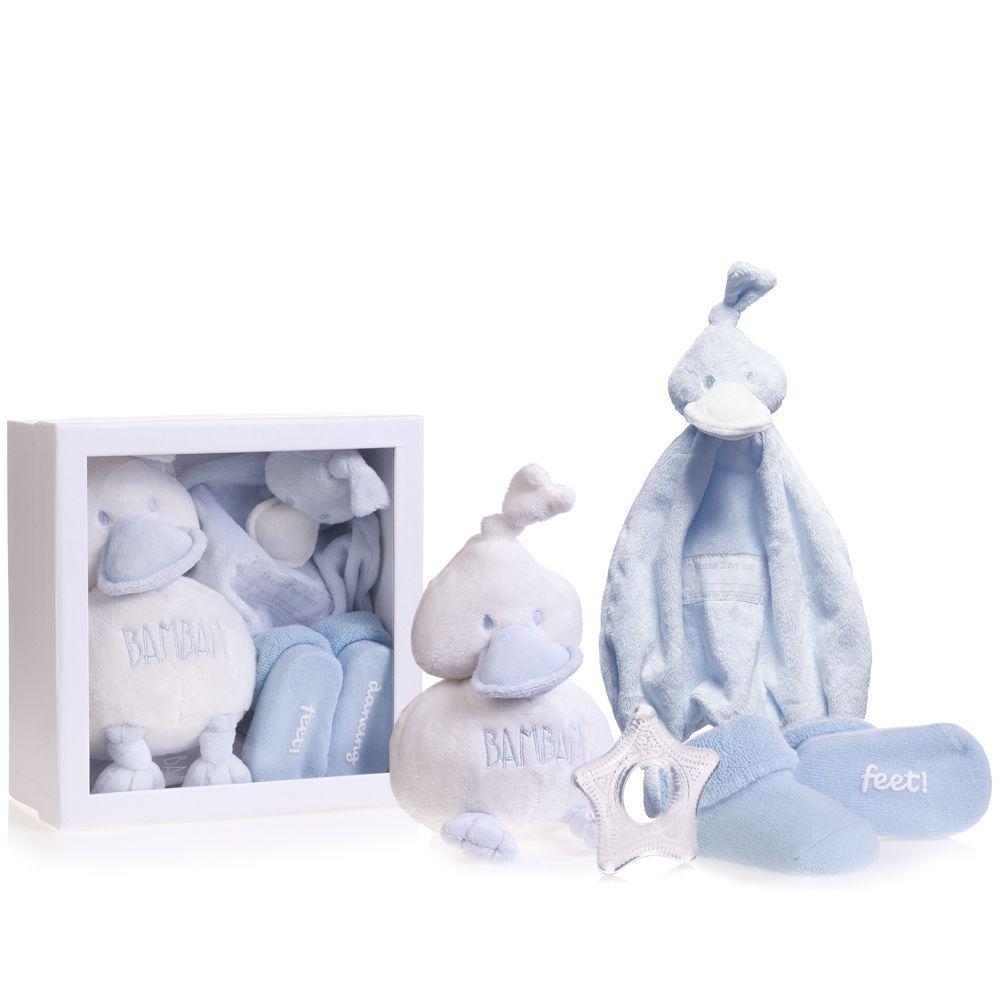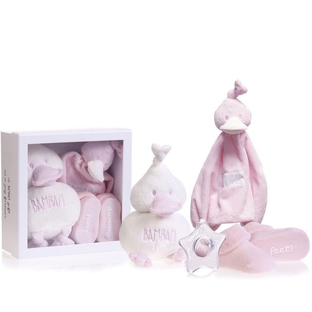 كاملة مع لعبة بطة ناعمة ، ولحاف بط ، وجوارب ناعمة من مزيج القطن وعضاضة على شكل تاج ، صندوق الهدايا هذا المقدم بشكل جميل من BamBam يحتوي على كل ما يحتاجه الطفل لترحيب حار في العالم