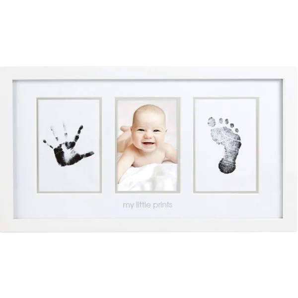 التقط صورًا لأطفالك واعتز بها إلى الأبد مع إطار صور Pearhead’s Babyprints. يشتمل هذا الإطار الخشبي الحديث باللون الأبيض على كل ما تحتاجه لإنشاء تذكار شخصي مع المطبوعات الصغيرة لحديثي الولادة. تشتمل على وسادتي حبر نظيفتين الملمس تضمن أن يدي وأقدام الطفل لن تلمس الحبر أبدًا! لخلق انطباع ، تأكد من أن الحبر متجه لأسفل على البطاقات البيضاء المرفقة واضغط على يد طفلك وقدميه بشكل منفصل على لوحة الحبر التي تعمل باللمس. ستترك بصمات طفلك الصغيرة على البطاقات دون أي حبر على الطفل! اتركه يجف لمدة 1-2 أيام. ثم يمكنك وضع المطبوعات في الإطار مع صورة رائعة لمولودك الجديد مقاس 4 × 6 بوصة. يتميز الإطار بتفاصيل فضية مع “طبعاتي الصغيرة” برقائق فضية مختومة على الحصيرة المشطوفة الخالية من الأحماض ، مما يضفي لمسة لطيفة. كما تشتمل على علاقة مسننة لتعليقها بسهولة على أي جدار في حضانة طفلك أو حول منزلك. استخدام مرتين كحد أقصى. لحديثي الولادة فقط. سوف تستوعب وسادات الحبر أيدي / أقدام يصل عرضها إلى 2.25 بوصة × 3.5 بوصة طويلة. هذا الإطار هو هدية استحمام الطفل المثالية لأي من الآباء المتوقعين! الآن سوف تكون دائمًا قادرًا على تذكر مدى ضآلة خنازير طفلك والاعتزاز بها من خلال إطار صور Pearhead’s Babyprints. أبعاد المنتج: 17 ”W x 9.50” H x .56 ”D ؛ إدراج الصورة: 4 “× 6”