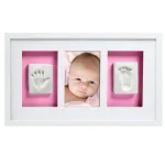 Celebrate the arrival of your little one with Pearhead’s Baby Prints Deluxe Wall Frame. This elegant white and gray shadowbox frame allows you to create a lasting memory with your baby’s handprint or footprint. The kit includes everything you need to make the print—soft, air-drying clay, a rolling pin, and a ruler. Simply press your baby’s hand or foot into the non-toxic clay, let it dry, and display it alongside your favorite 4” x 6” photo.
