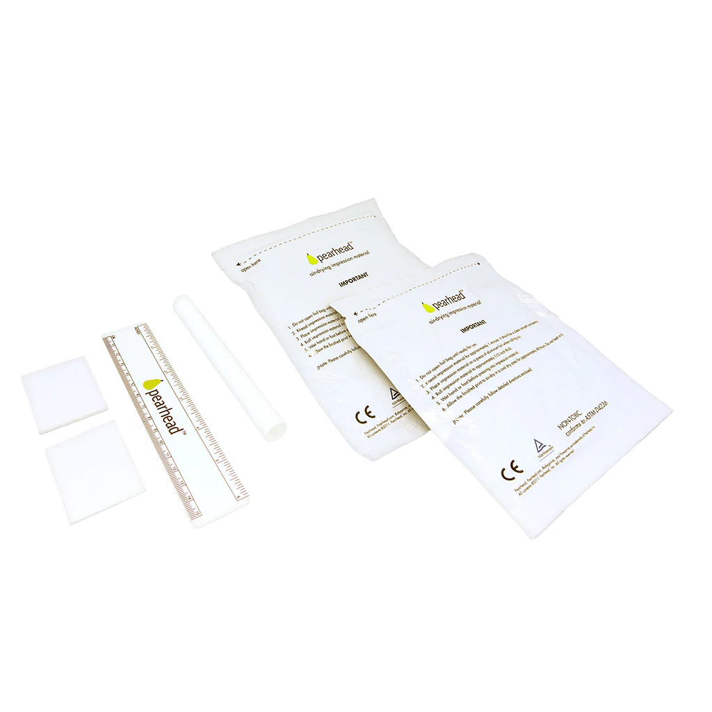 - Includes air-drying clay, ruler, double-sided tape, and reversible pink and blue background mat