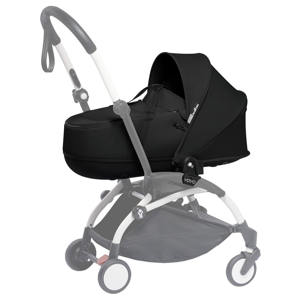 Created for newborns who weigh up to 9kg (approx. 6 months old), the YOYO bassinet is positioned on top of the stroller’s frame, so you can be close to your baby. Whether you are using the YOYO+ or YOYO2 frame, it easily clips onto the frame in a single click without waking her/him up when you head out for a walk. With the bassinet on, the YOYO2 remains just as manoeuvrable and flexible.