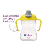 The easy-grip handles are perfect for tiny hands, and the built-in spout cover keeps the drinking area clean and hygienic. The lid is attached, so you’ll never lose it on the go! Plus, the interchangeable base means it grows with your baby—compatible with the b.box sippy cup and training lids.