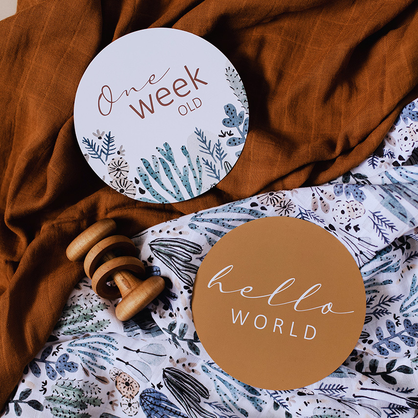 Exclusive design with Miss Kyree Loves. Capture your baby’s milestone moments and document their ‘firsts’ in photographs to treasure for a lifetime with our Eventide & Ice Blue Milestone Cards.