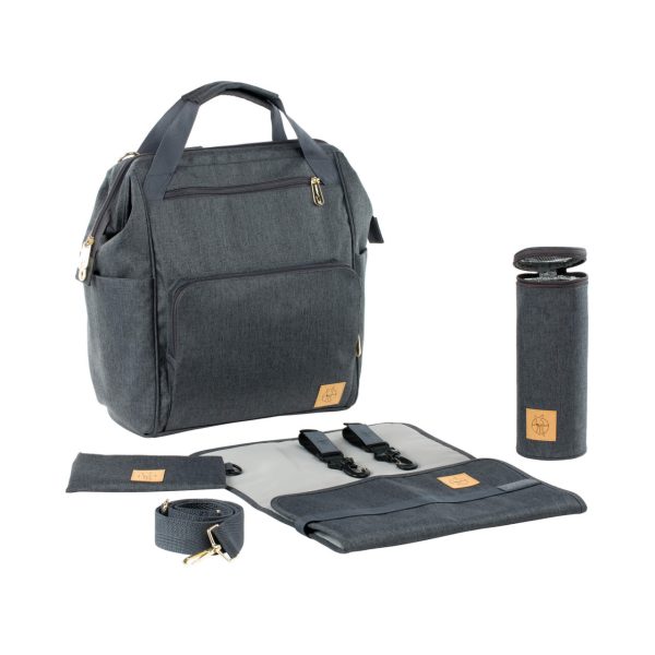 The convenient clasp and a well-organized interior ensures you have everything at your fingertips. Large compartments and accessories such as a water-repellent changing mat, an insulated, removable bottle holder, a removable compartment for baby food jars, a cell phone compartment, key ring and much more make the Goldie Backpack a really practical and commodious holdall. In less than no time, the backpack can be turned into a shoulder bag thanks to the extra shoulder strap. And the stroller hooks make it possible to remove the bag from your shoulder and directly attach it to the stroller or bike trailer. That is back-friendly and convenient as well.