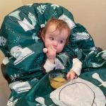 Let’s face it – feeding time is messy! The grabease allover bib allows your little independently self-feed without a messy clean up for parents. The allover bib completely covers your baby and highchair so food stays off your baby and doesn’t get stuck in all the cracks and corners. Clean up couldn’t be easier. Simply remove the bib, shake the leftover food into the trash and toss it into the machine (gentle cycle) or wipe clean… For anything left on the floor,