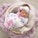 Our Cotton Jersey Wrap is soft and stretchy, it moves and stretches with baby. This wrap comes with a matching topknot.