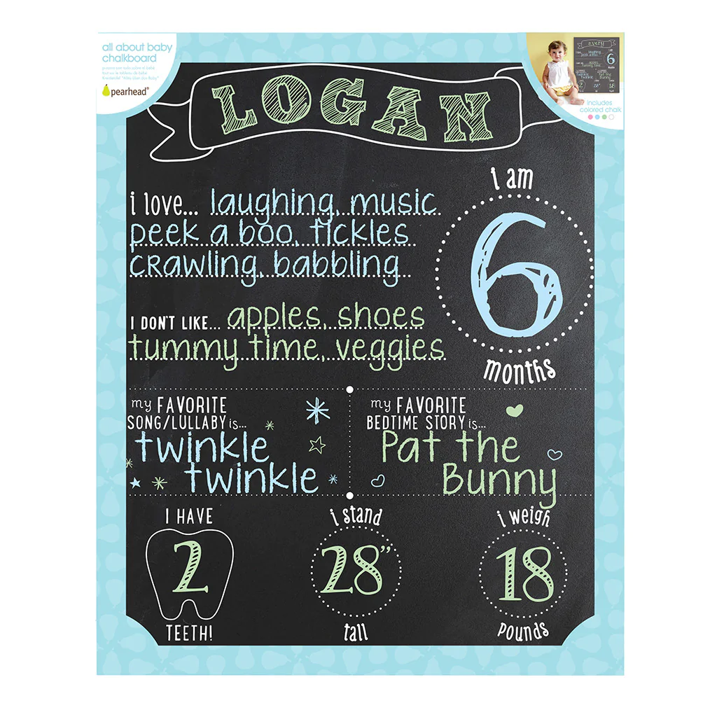 • All About Me Chalk Board: A fun and interactive chalkboard designed to document and share special details about your child’s growth and accomplishments. It’s a great way to create lasting memories and share them with friends and family.