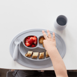 The Mini Mat is ezpz’s top-selling product, and it is a great mealtime solution for both infants and travel. The Mini Mat is an all-in-one placemat + plate that suctions to the table. The mat’s stable base reduces tipped bowls / plates and helps infants and toddlers learn to self-feed.