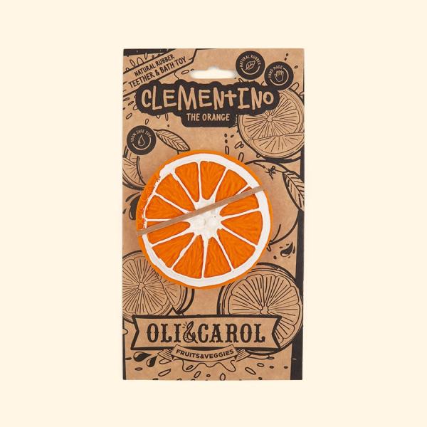 Clementino the Orange is a chewable baby toy for teething, bath time and sensory play. Handmade in 100% natural rubber and hand painted with natural pigments. Soft, easy to grasp and safe to chew. Stimulates baby’s senses and soothes teething gums.
