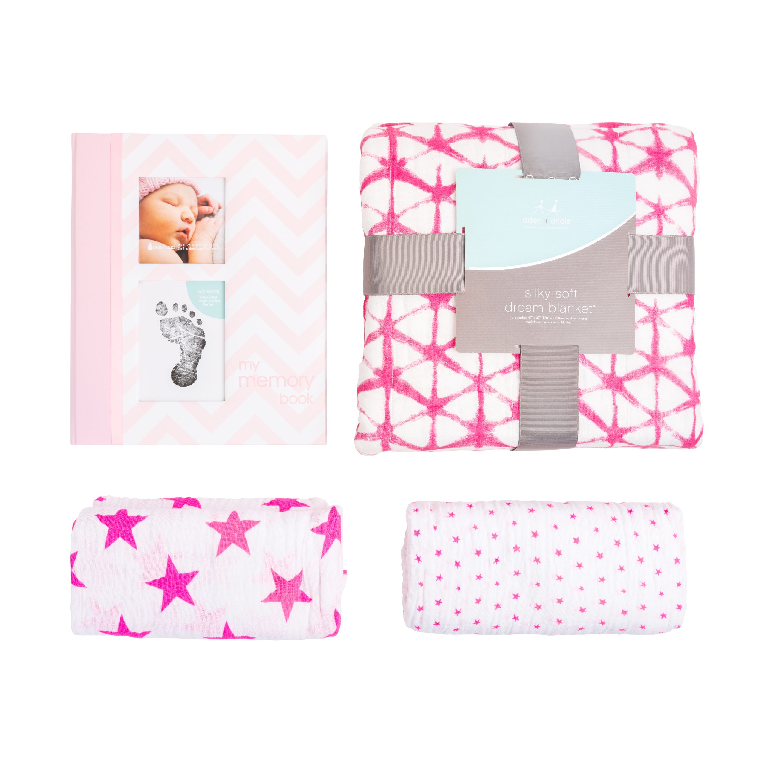 - Aden + Anais Pink Stars Swaddles: Soft, breathable, and generously sized, these muslin swaddles are perfect for keeping baby cozy. Their versatility makes them ideal for swaddling, stroller covers, or as nursing blankets.