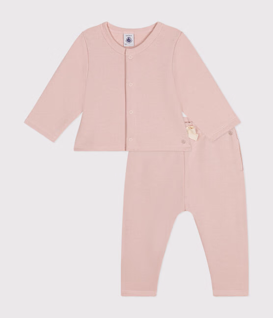 Petit Bateau’s innovative tube knit fabric combines two ultra-soft layers, creating a unique texture that traps air for warmth and exceptional comfort. The cardigan features a full-length popper fastening, making it easy to slip on and off, while the trousers have an elasticated waist for added comfort and hassle-free dressing.