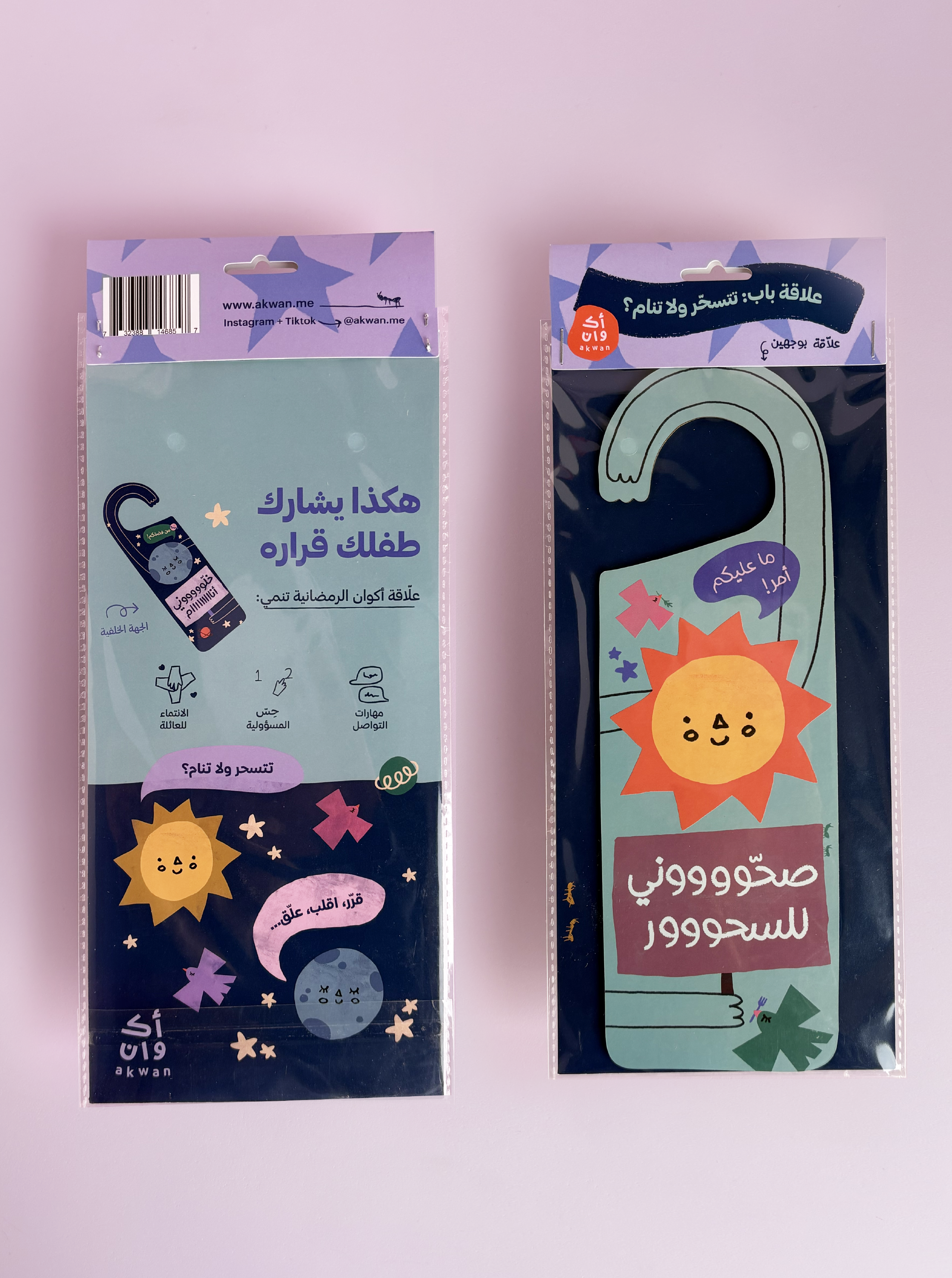 A double-sided door hanger designed to let your little one make their own choice: Will they drift off into sweet dreams tonight 🌙💤 or join the family for a cozy Suhoor meal? 🍴✨