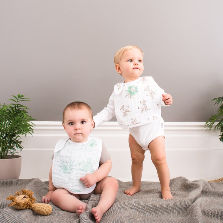 Our cotton muslin snap baby bibs offer an adjustable fit that grows with baby thanks to three snaps conveniently located in the front for easy fastening. Made with three layers, the absorbent bib soaks up spills, drools, and baby burps.