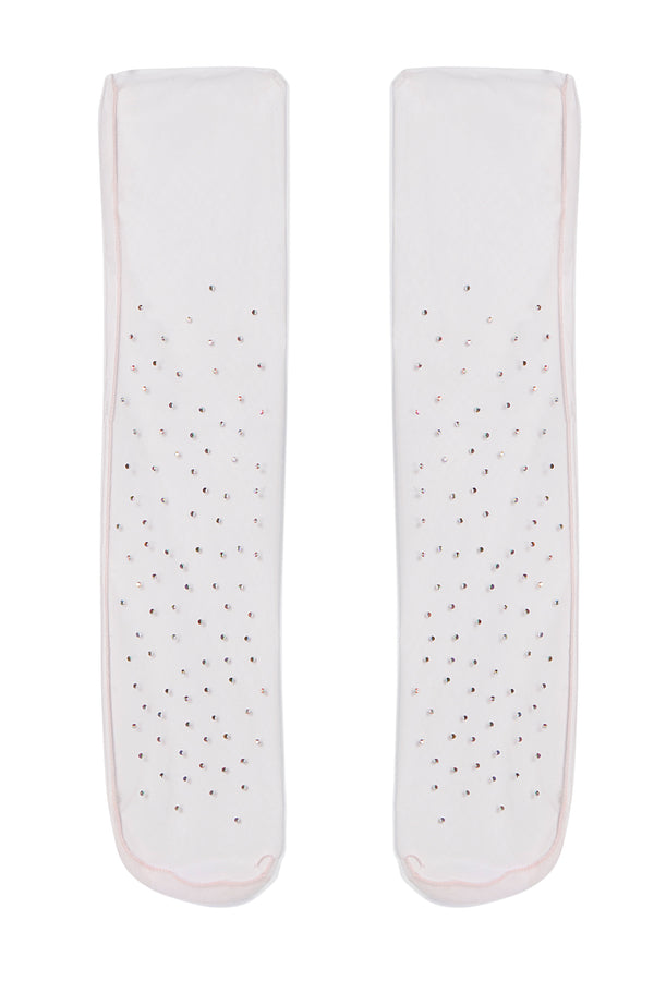 Sparkle and shine in these fun sheer tulle socks featuring a AB crystal rhinestones in a slouchy silhouette.