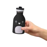 Water Bottle Satin Finish 18/8 food grade stainless steel 100% BPA free phthalates free, toxins free Does not retain or impart any flavour Leak proof lid with flip-open straw Widemouth for ice filling and easy cleaning Plane boar